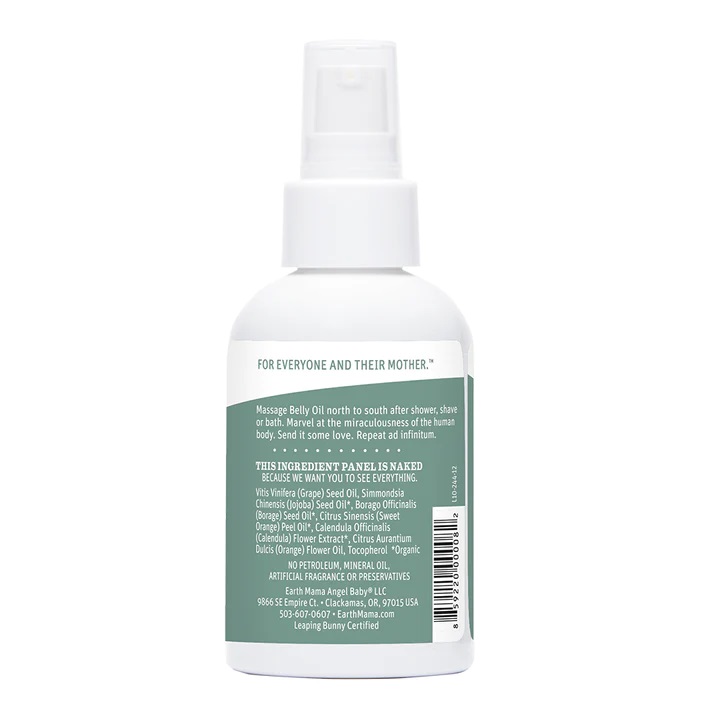 Lots of mama parts grow and stretch to accommodate a baby. Earth Mama’s cruelty-free Belly Oil moisturizes and comforts your gloriously expanding (and often uncomfortable) belly — along with your hips, breasts and thighs — with a proprietary blend of luxe herb-infused oils. Nourishing organic calendula, organic jojoba oil, organic borage oil and orange blossom pure essential oil combine to soften expanding skin. Light and easily absorbable, Belly Oil helps nourish and encourage skin's natural elasticity and the delicate scent won't aggravate occasional morning sickness. It’s moisturizing for after shower or bath, and great news – you can still use it when you’re not pregnant!