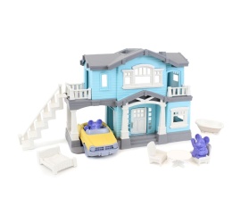 Rise and Shine! It’s another imagination-filled day at the Green Toys™ House! This playset features an expansive, multi-leveled house, bright yellow convertible, two mouse characters, staircase, bed, bathtub, table, and two chairs for endless creative play. The moveable stairs can be...
