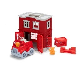 Product Description Spark imaginative play with the Green Toys™ Fire Station! This playset has everything your little firefighter needs to save the day, including a fire station, fire engine, firefighter cat characters, rotating water cannon, command center, and stackable bunk beds....