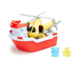No water rescue is out of reach when the Green Toys™ Rescue Boat & Helicopter gets the call! This two-in-one toy is just as fun on land as it is in water, with a bright yellow, full-size Helicopter nestled on the back deck of the red and white Rescue Boat. The set also includes two...