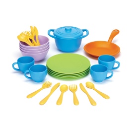 Reduce fossil fuel use and CO2 emissions...it’s all part of the recipe for aspiring gourmets who use the Green Toy Chef Set. This classic collection of kitchen essentials is made from 100% recycled milk jugs, and includes a stock pot with lid, skillet, spatula and ladle. It meets FDA specs for...
