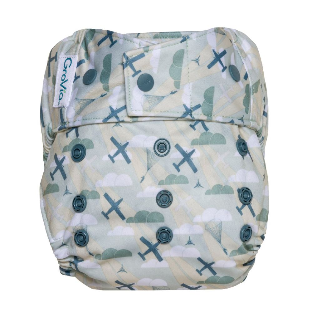 The GroVia® Hybrid system is a revolution in cloth diapering. The innovative cloth diaper Shell is designed to allow for multiple wears between washes and uses the industry's best materials. For use with our Soaker Pads, BioSoakers, and other absorbent diapers.