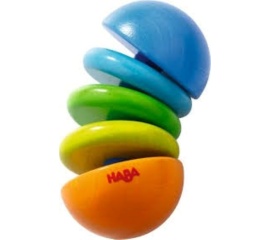 Age: 0 - 12 months Shake it up with the Klick-Klack Rattling Figure from HABA! The wooden parts click together when shaken or swung around, making a fun rattling sound to delight your child. It's colorful rings will capture your childs imagination. UPC...