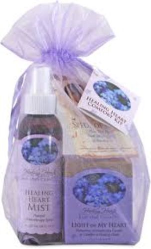 The Light of My Heart Candle is a clean burning soy votive aromatherapy candle, enhanced with a special blend of comforting pure essential oils. Healing Heart Mist blends pure essential oils traditionally used to ease sadness and soothe spirits.