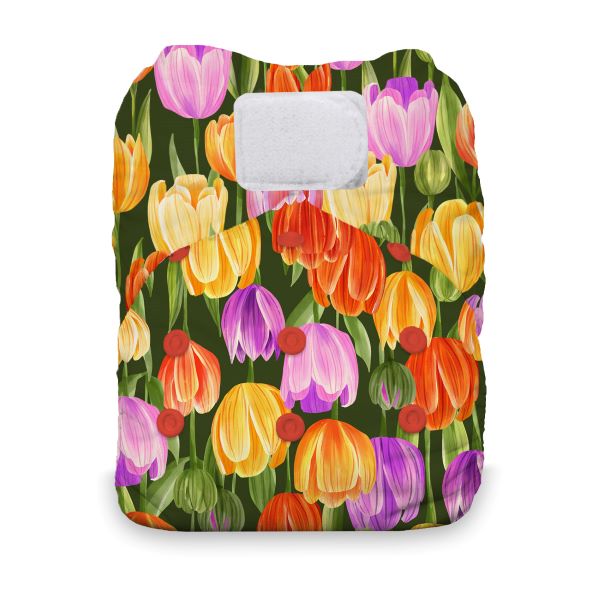 Please give a warm welcome to our all-new Natural One-Size All-in-One diaper! This new, easy-to-use cloth diaper includes 11 thirsty layers of natural fibers: 3 layers of organic cotton in the body and 2 soaker pads with 8 layers of the same hemp/organic cotton used in the inserts and prefolds Thirsties customers have grown to know and love. Whether parents are first-timers at cloth diapering or old pros, this Natural option offers convenience, gentle elastic, a trim fit and incredible absorbency all with a simple one-and-done step.
