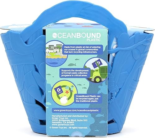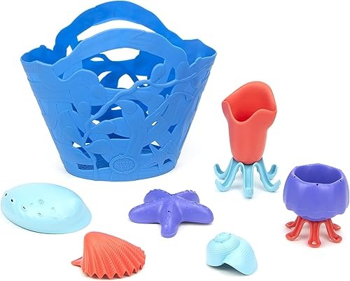 Bring the fun and learning of tide pool and water table play to the bathtub, while keeping plastic out of our oceans! The 7-piece Green Toys™ OceanBound Plastic Tide Pool Set includes a starfish, scallop, abalone, snail, squid, and jellyfish, as well as a seaweed-patterned storage bag. The palm-sized shells are the perfect size for scooping and pouring water to wash little ones in infant tubs, while the whole set is also great for the beach and backyard. Plus, the pieces are made in the USA from 100% recycled OceanBound Plastic, a sustainable product made from plastic at risk of entering our oceans along coastlines in global communities that lack recycling infrastructure. When it’s time for cleanup, collect all the pieces in the storage bag (made from 100% recycled plastic bags!). The holes throughout the bag allow water to drain out between uses.