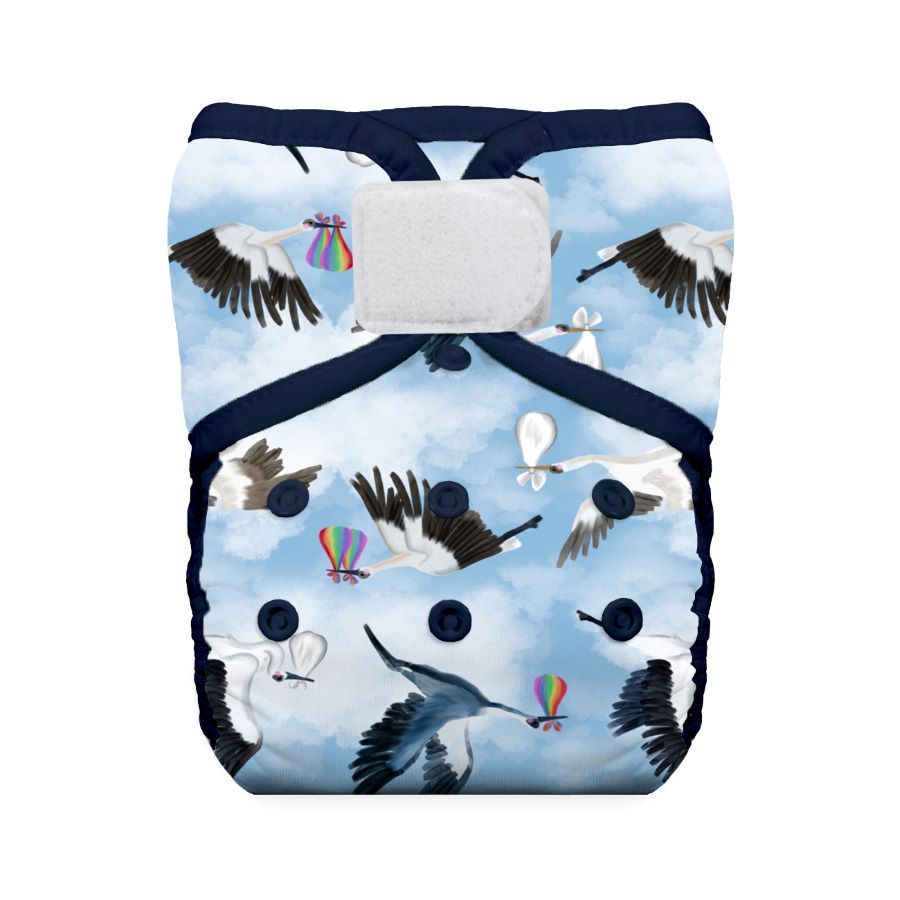 • A two-piece diapering system combining 8 layers of absorbent insert and a waterproof pocket diaper