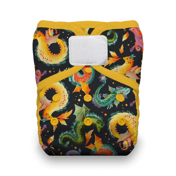 Both hook & loop and snap closures are available on the Thirties One Size Pocket. While many families prefer hook& loop closures because of the simple, secure fit they provide, snap closures do have a few advantages of their own. Snaps are nearly indestructible and are more challenging to unfasten for a toddler who prefers to go naked.