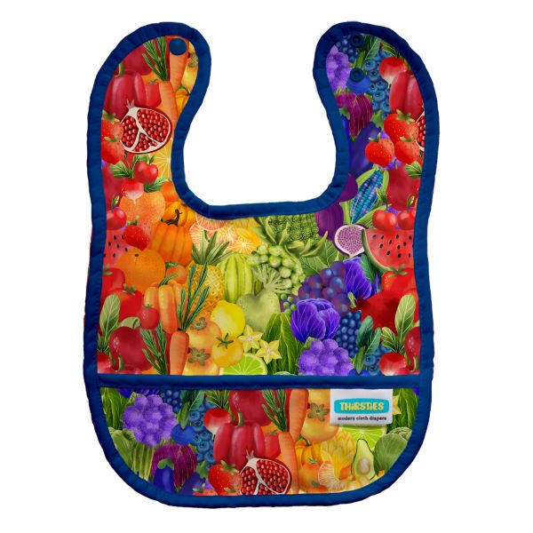 Please welcome Thirsties Pocket Bib to our regular line of products! We’ve made cleanup simple with this easy-to-clean, waterproof bib with two adjustable snap settings and a handy crumb catcher. Thirsties Pocket Bib is made with our waterproof PUL, backed with white mesh, and trimmed with matching binding.