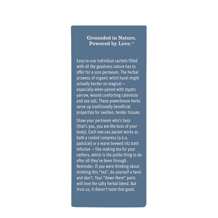 Take care “down there” (aka your hemorrhoids, post-labor perineum, or episiotomy) with Earth Mama's herbal sitz bath compresses filled with organic herbs traditionally used to soothe and comfort “down there” during pregnancy, after childbirth, or anytime you need a little TLC in that department. Packed in easy-to-use, individual herbal sachets, each one is perfect for one use.