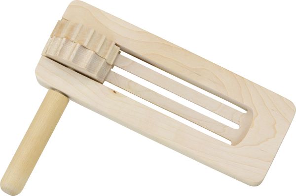 The Rackety Ratchet is our version of an old-fashioned noisemaker. Commonly used in Judaism during the Purim holiday (a "grogger" or "gragger"), this ratchet has two differently spaced wheels, creating even more sound! All you have to do is spin it! The Rackety Ratchet is made of maple and measures 8" wide, 6.5" long (including the 3.5" handle), and 0.75" thick.