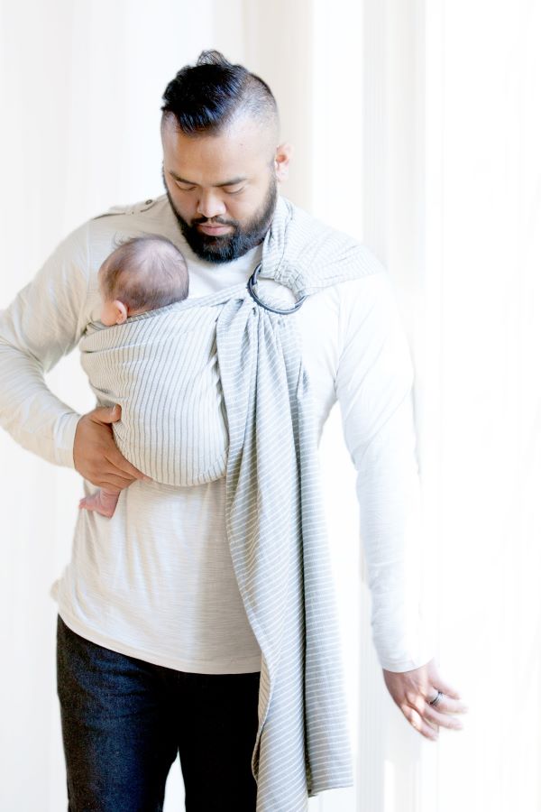 Grab and go! Thanks to the easy-fit aluminum sling rings, the Moby Sling is fully adjustable to fit all body types and sizes. Simply lift up on the rings to tighten or loosen, creating a custom fit each and every time you wear. Truly one-size-fits-all, for newborn through toddler.