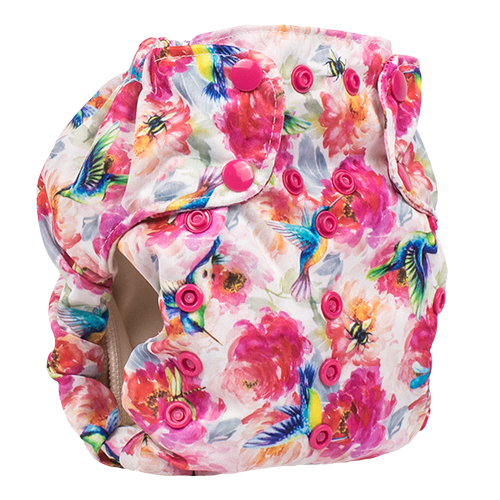 The Smart One is an organic, one-size, AIO diaper. This diaper will fit most babies 8lbs-35lbs.