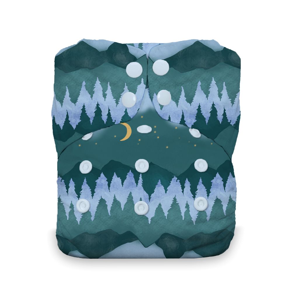 The interior consists of ten thirsty layers of natural fibers. The top soaker is made of four layers of GOTS certified organic cotton topped with a layer of stay-dry microfleece to keep your baby feeling dry. The second soaker has four layers of hemp/organic cotton, and the body has two additional layers of organic cotton and is topped with a layer of stay-dry microfleece.