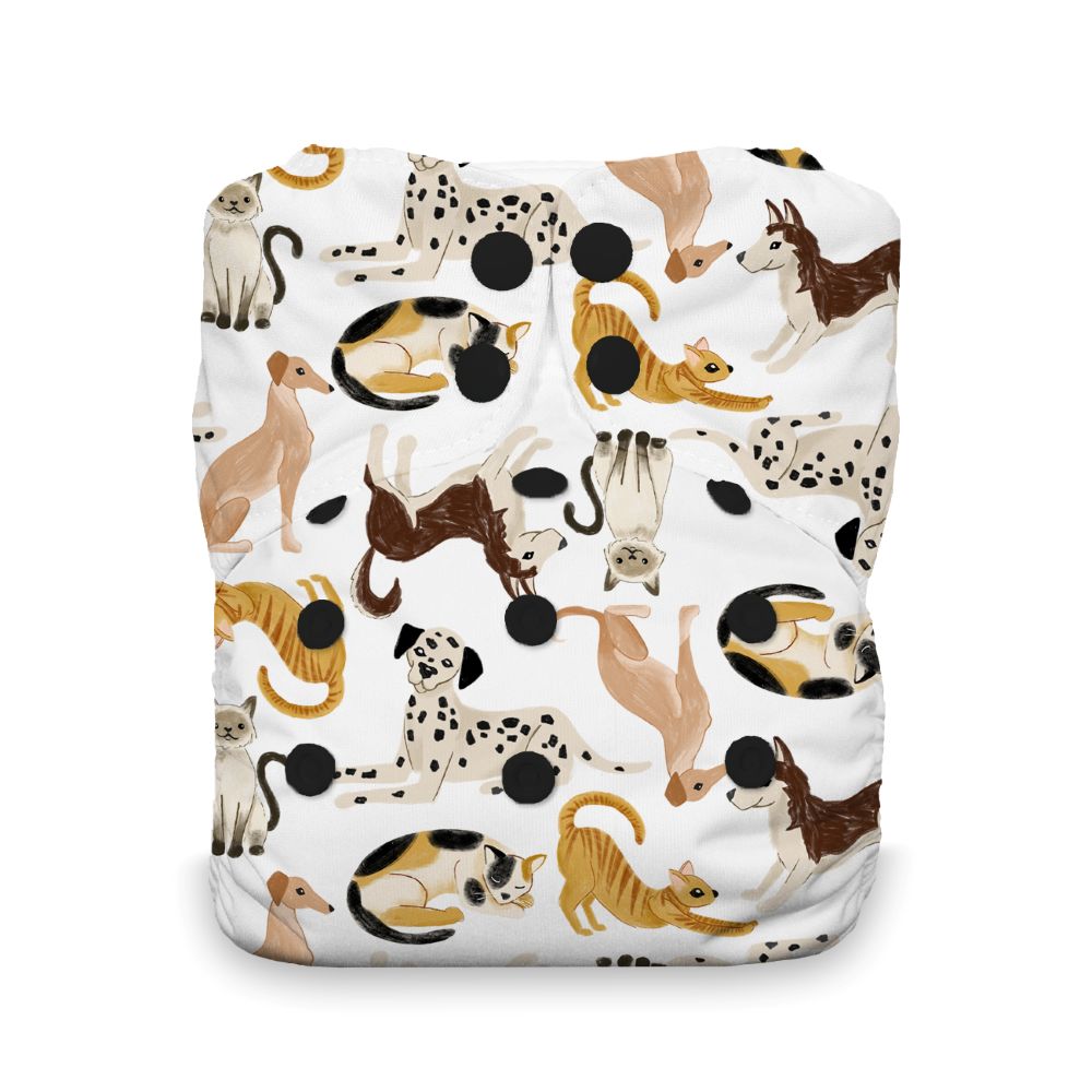 Both hook & loop and snap closures are available on Thirsties One Size All in One. While many families prefer hook & loop closures because of the simple, secure fit they provide, snap closures do have a few advantages of their own. They are practically indestructible and are more unyielding than our hook & loop closures, making them more challenging to unfasten for a toddler who prefers to go naked.