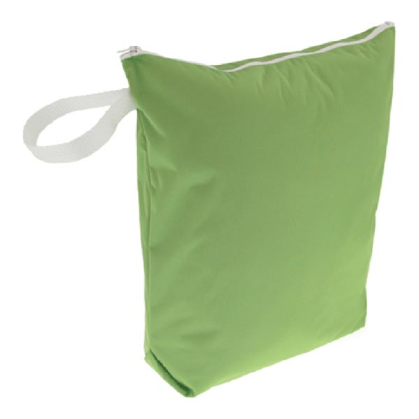 This is a waterproof bag to keep your wet and/or soiled diapers in while you're out and about. Zipper top closure secures the bag shut. This bag can accommodate 6-8 diapers.